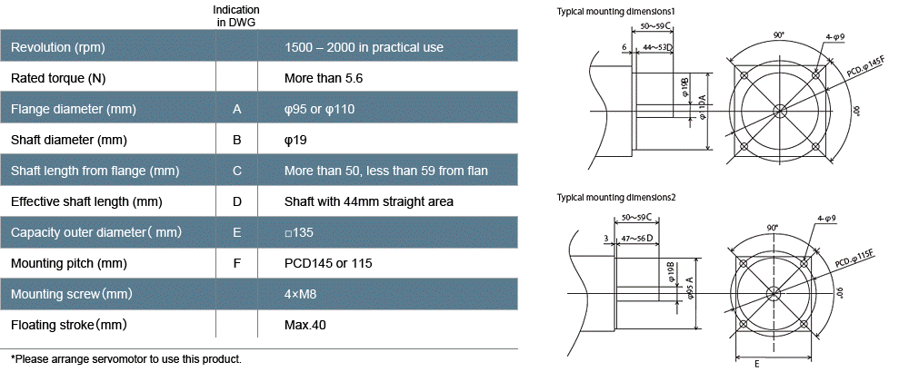 Servomotor function allows control of revolution frequency and detection of electric current.